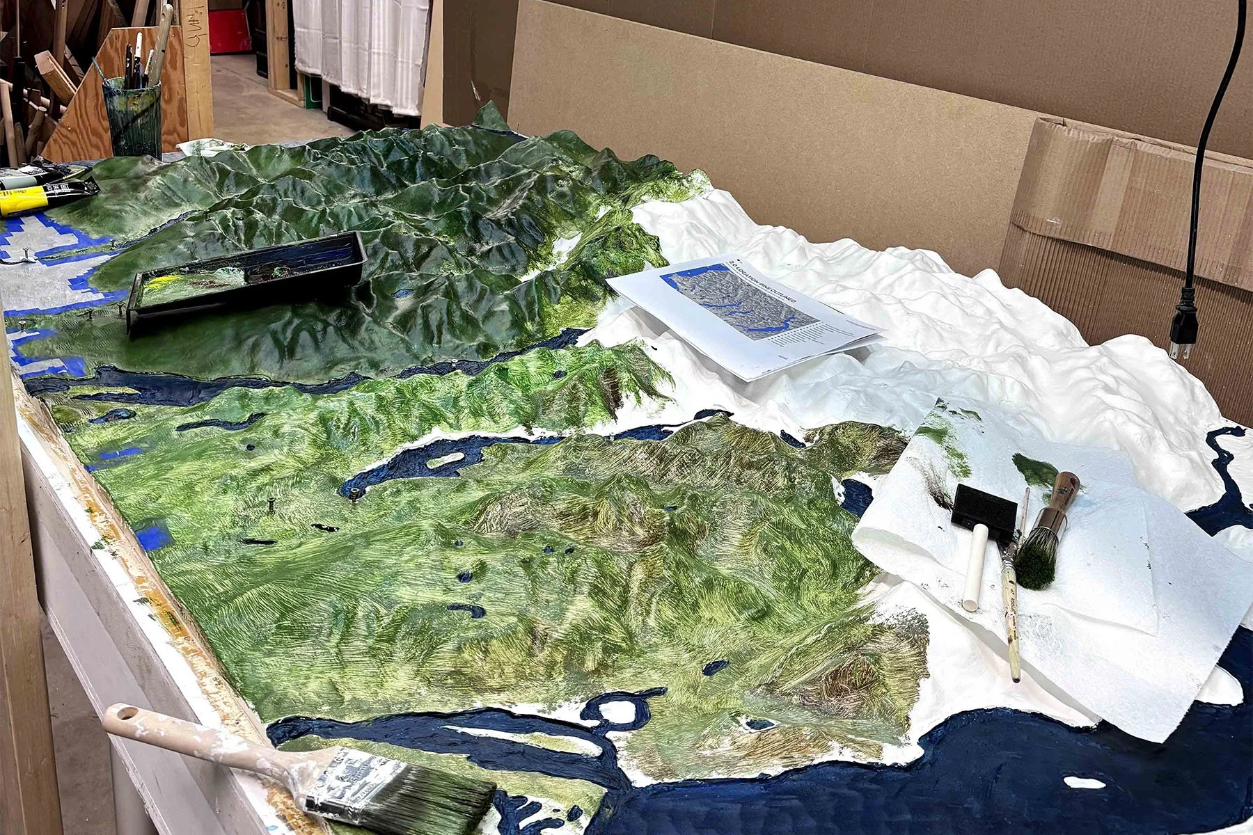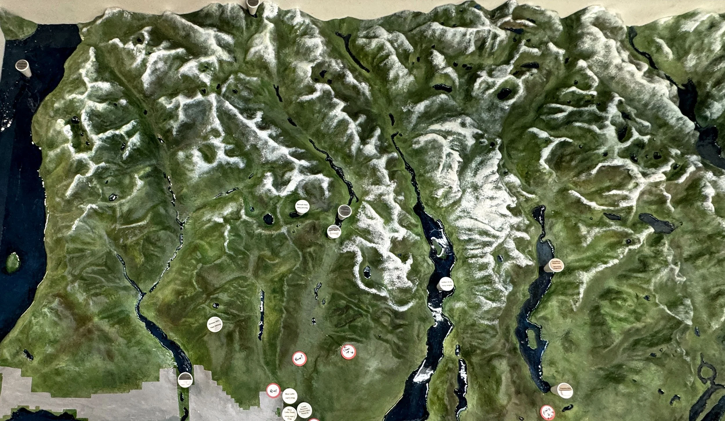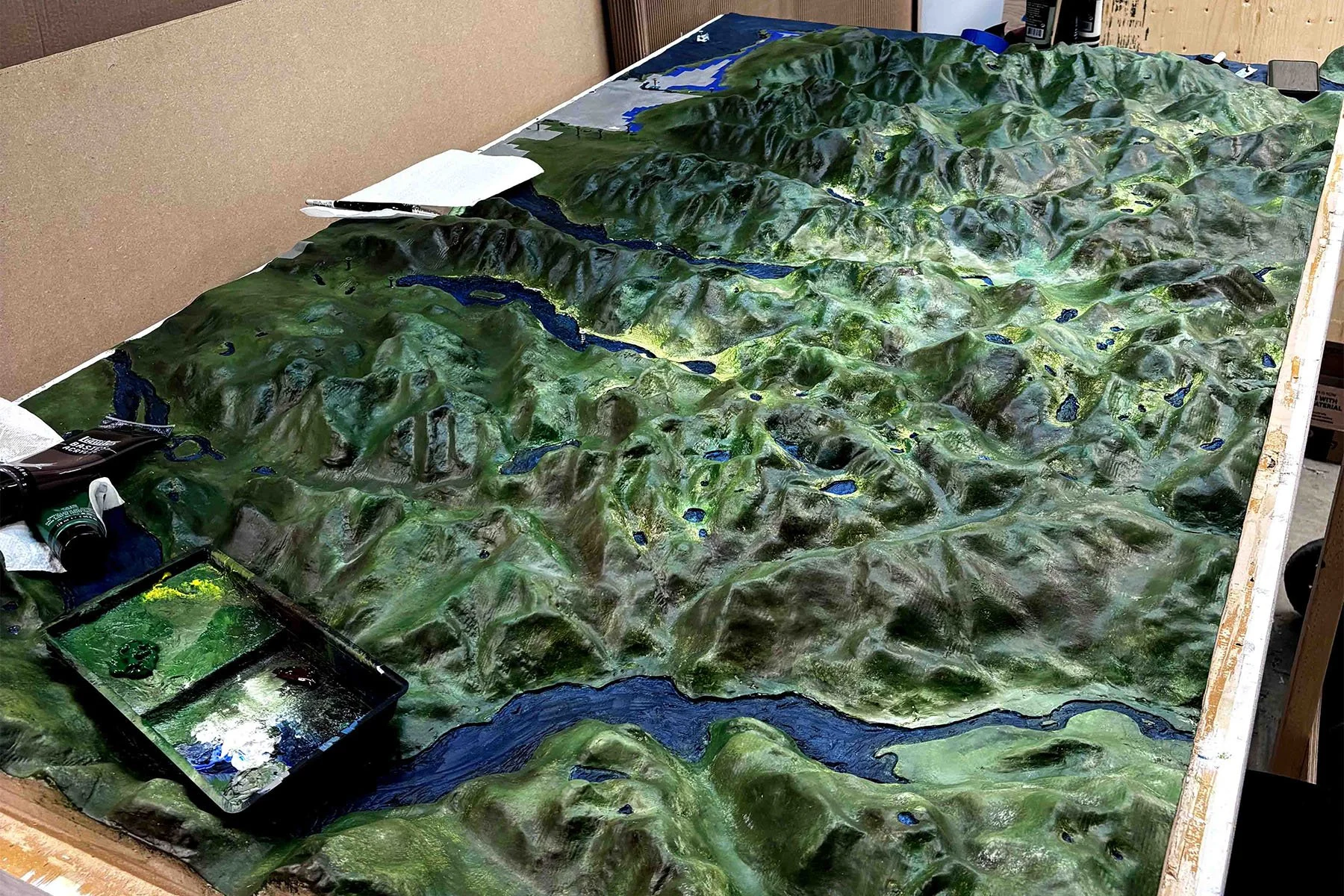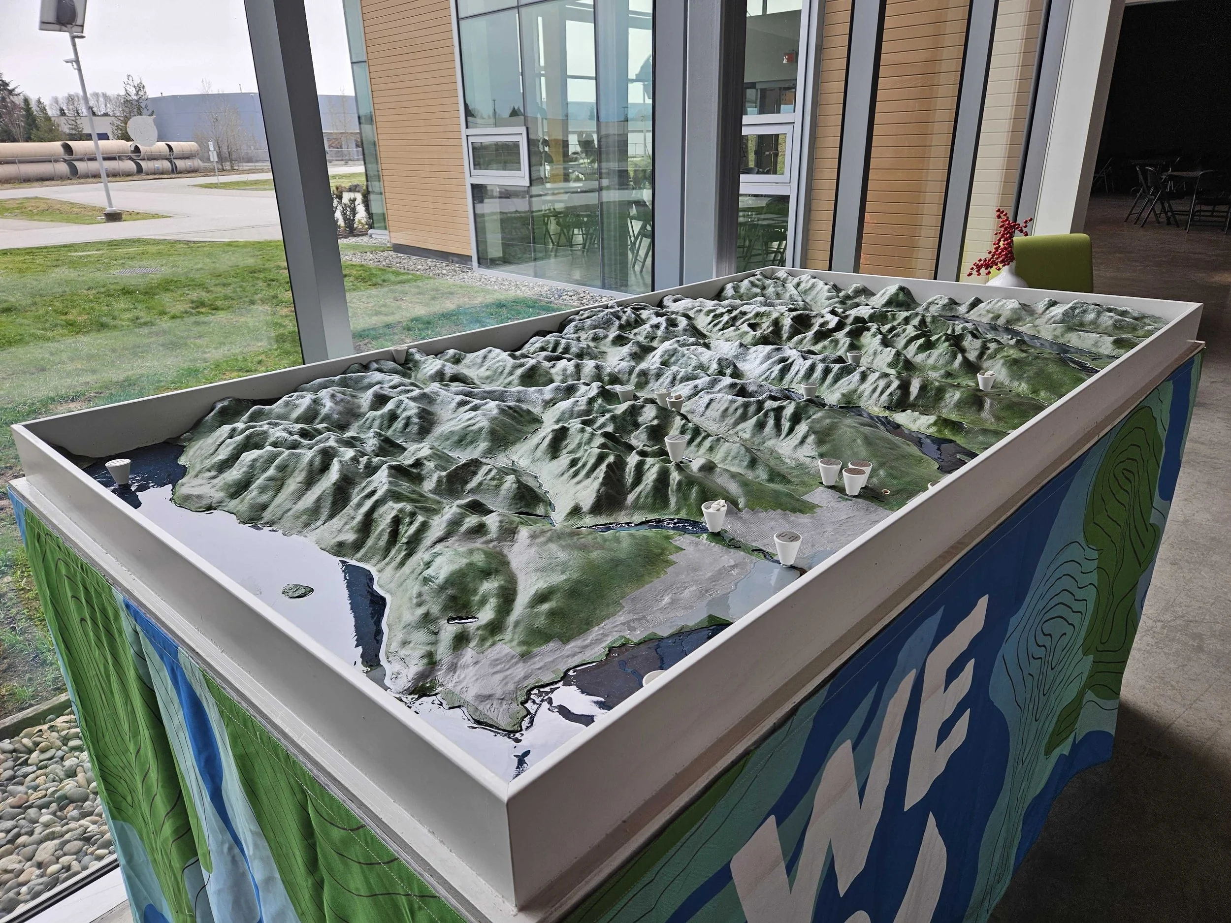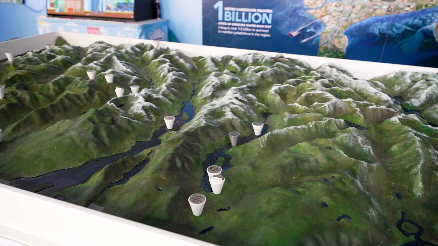 The PNE stands as British Columbia's premier destination for an array of events and immersive experiences. Every summer, it plays host to a fair, where Metro Vancouver presents an exhibit aimed at enlightening the public about the city's services. Among the projects we designed was a 3D topographical map of the North Shore Mountains. Commissioned by Metro Vancouver's Water department, this model served to highlight the strategic locations of dams, reservoirs, lakes, rivers, and water treatment plants across the region, helping to serve as a visual aid when educating viewers.