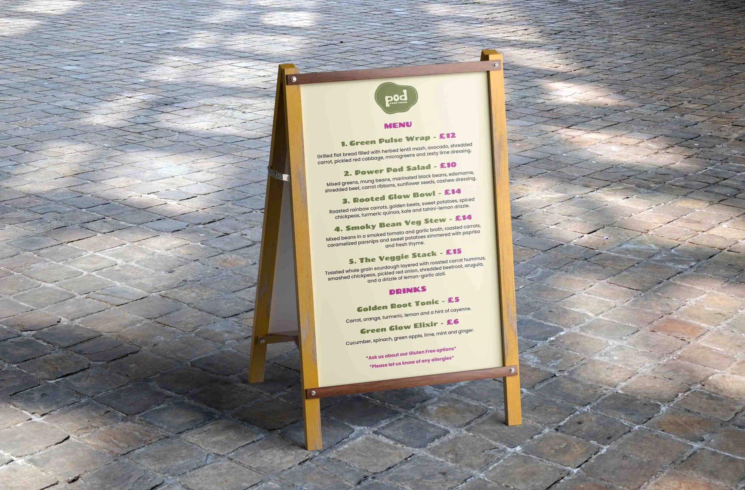 Pod food truck is a vibrant, plant-powered concept centred around vegetarian and vegan food, with a strong emphasis on whole foods that nourish the body. The overall vibe is bright, welcoming, and visually exciting—something that really reflects the energy you get from eating well. Taking inspiration from vegetables grown in pods— like peas, lentils, chickpeas, and beans and using them to create fresh, clean, protein-rich meals that leave you feeling fueled and balanced.
