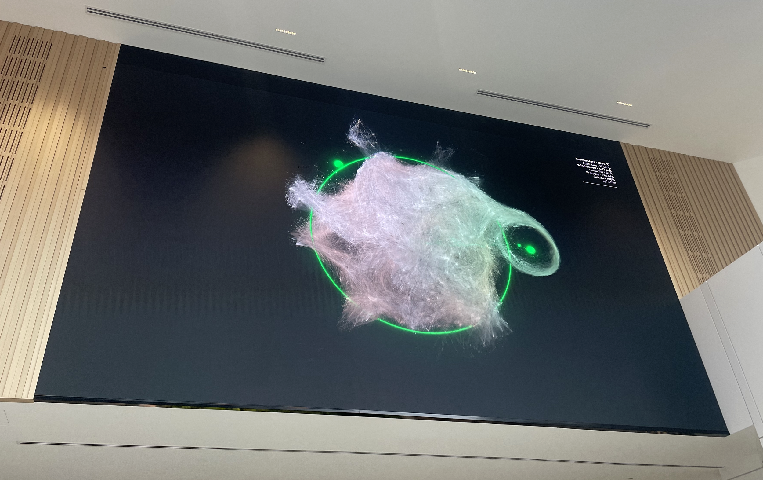 We integrated 3D graphic elements that responded to real-time weather conditions. For example, as wind speeds fluctuated, our 3D models moved with it, while particle density adjusted with temperature variations. Collaborating closely with Cristian Gonzalez, a talented creative coder and engineer, we sourced artwork from artists worldwide to create diverse and engaging textures for each 3D model.