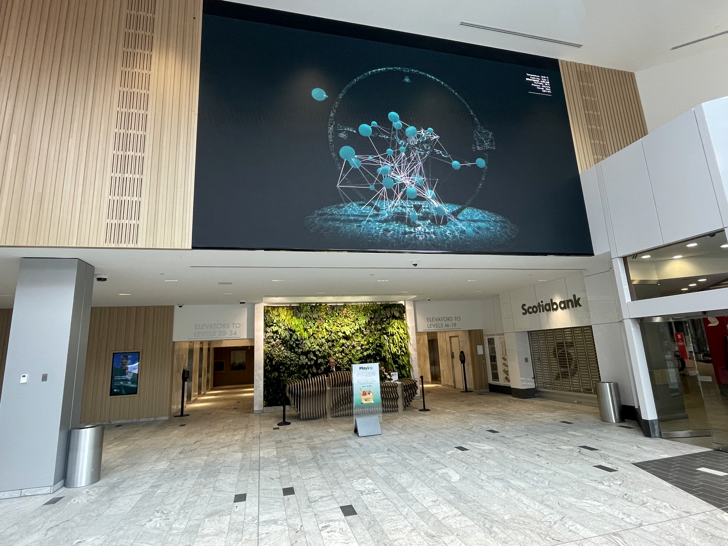 VCII stands as an amenity-rich office building nestled in the heart of Downtown Vancouver's bustling Central Business District. Tasked with enhancing the building's two main entrances, we were approached to craft captivating content for two large screens. Our objective? To provide dynamic videography showcasing Vancouver and British Columbia's beauty across all four seasons, with updates and announcements tailored to each day's theme.