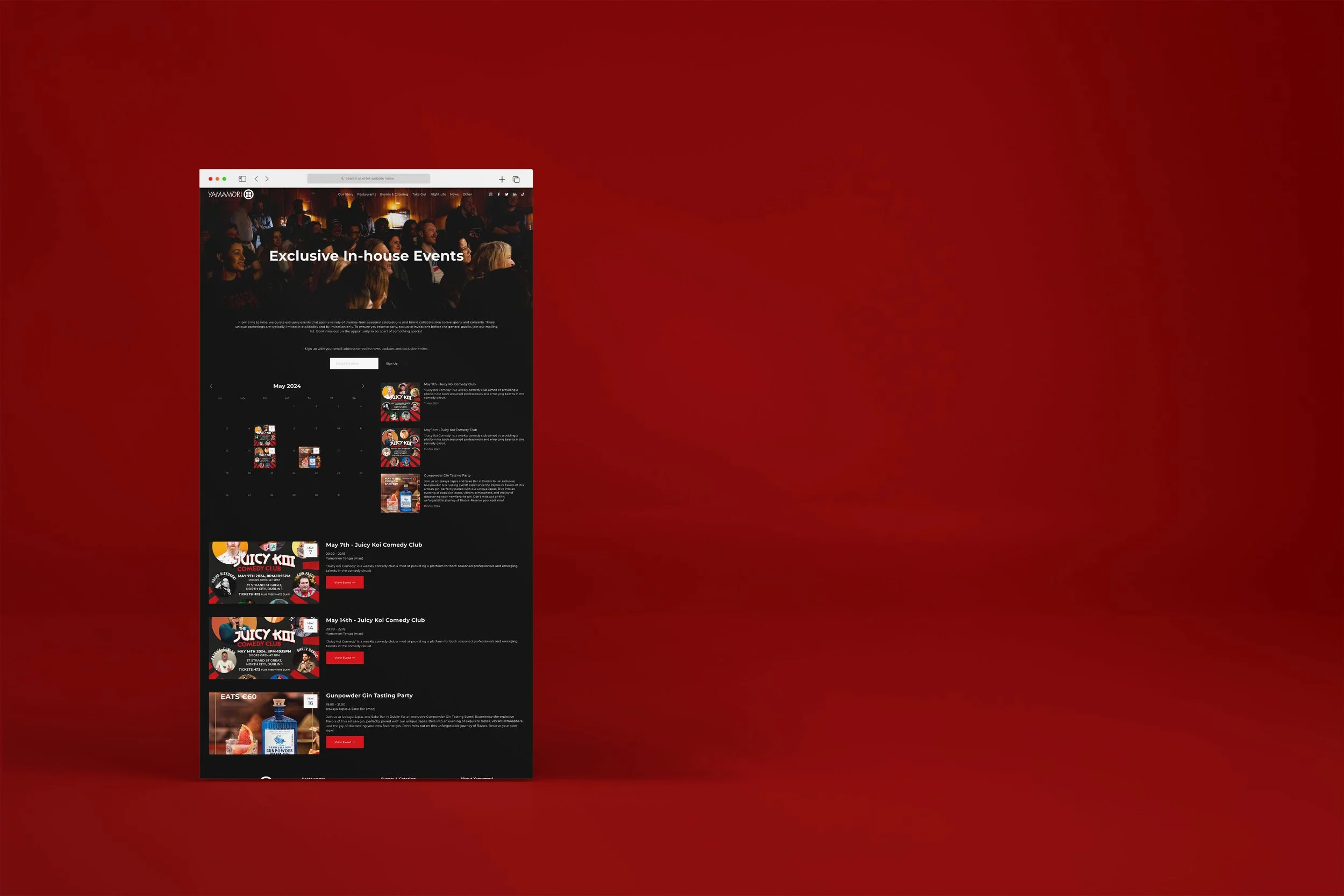 Yamamori Kigyo comprises a trio of Japanese restaurants in Dublin, Ireland. With three dynamic locations across Dublin: North City, South City, and Izakaya Japas & Sake, Yamamori offers a diverse range of dining experiences and exciting nightlife options. As the manager of their social media accounts, I created engaging campaigns, organized competitions, and produced compelling content for event promotions across various platforms. Additionally, I contributed to the design of their website, wrote blog posts, and optimized booking systems for seamless customer experiences. A selection of the marketing work I have produced for Yamamori can be seen below.